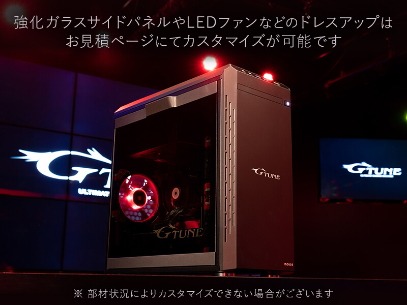 オプションという形にはなりますが、強化ガラスのサイドパネルへの交換やLEDファンの装着なども可能なので、派手なゲーミングPCを実現したい場合においても問題なく対応できそうです。
