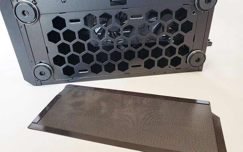 また、底面にはホコリをブロックするダストフィルターが搭載されていますが、これはマグネットで装着されているだけなので取り外しも楽。つまりダストフィルターの掃除も楽。