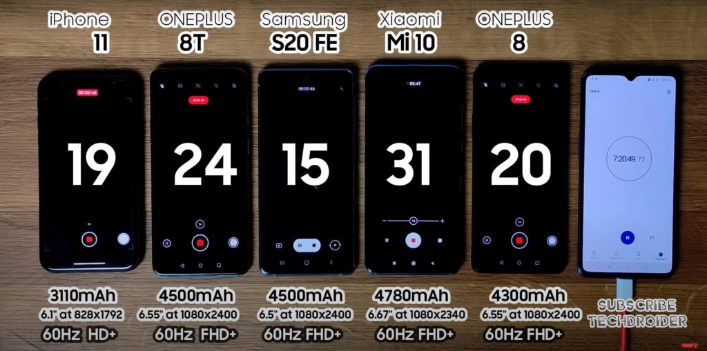 - OnePlus 8Tが他のスマホと比較してバッテリーが持つのか?